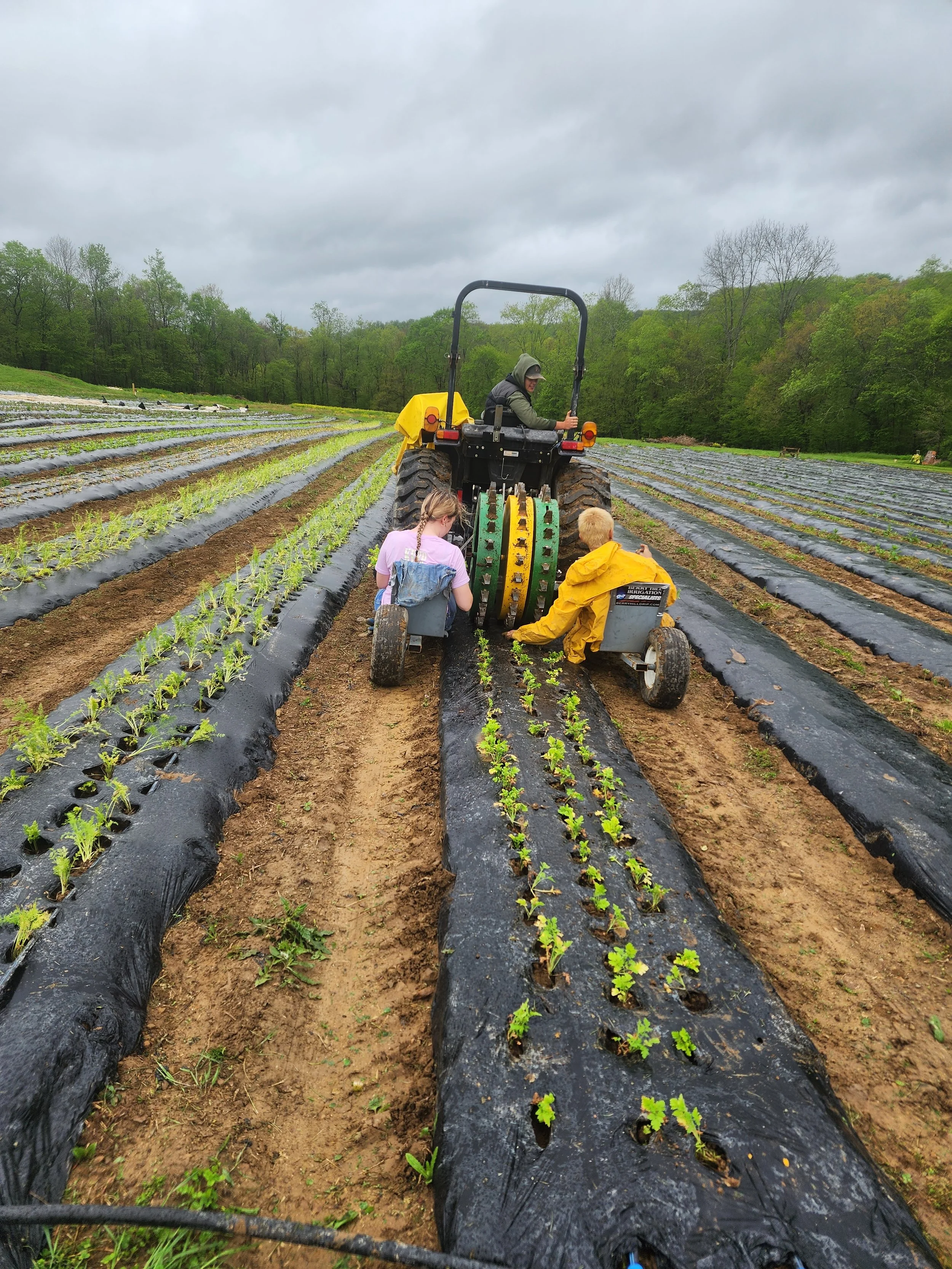 We also welcomed back our college summer help, which was a great boost. After months of tending to seedlings in trays, it was incredibly satisfying to see them finally tucked into the fields.