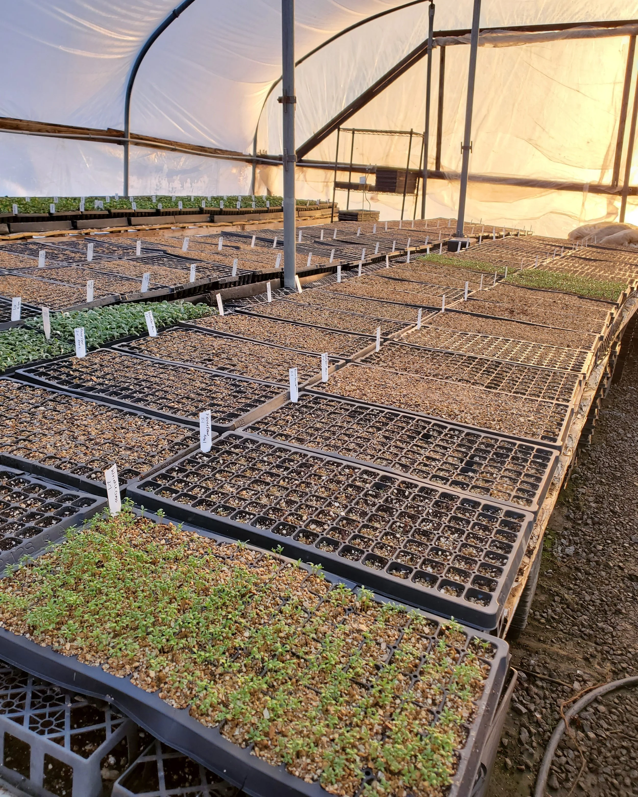 Our propagation house full of freshly seeded trays.